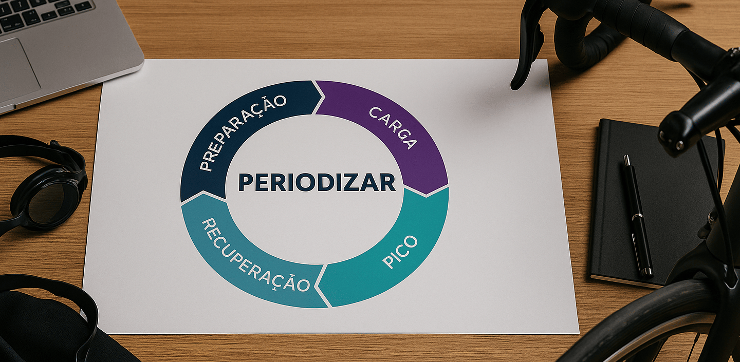 No triathlon de longa distância, periodização é o jogo em quatro atos: Preparação→ Carga → Pico → Recuperação. Antes de cada prova, eu “desequilíbrio” de propósito — treino mais, durmo melhor, corto distrações — e depois faço o deload: reduzo a carga para que o corpo absorva o estímulo. Quando ignoro essa janela, vem a lição na forma de lesão. Se insistir, vira lesão crônica ou doença – e o impacto é muito maior.